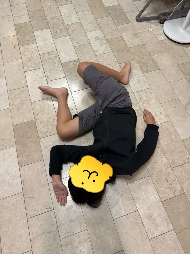 先日のダンス練習で疲れた後、床に寝転んだ姿は何かのピクトグラムのようでした😂