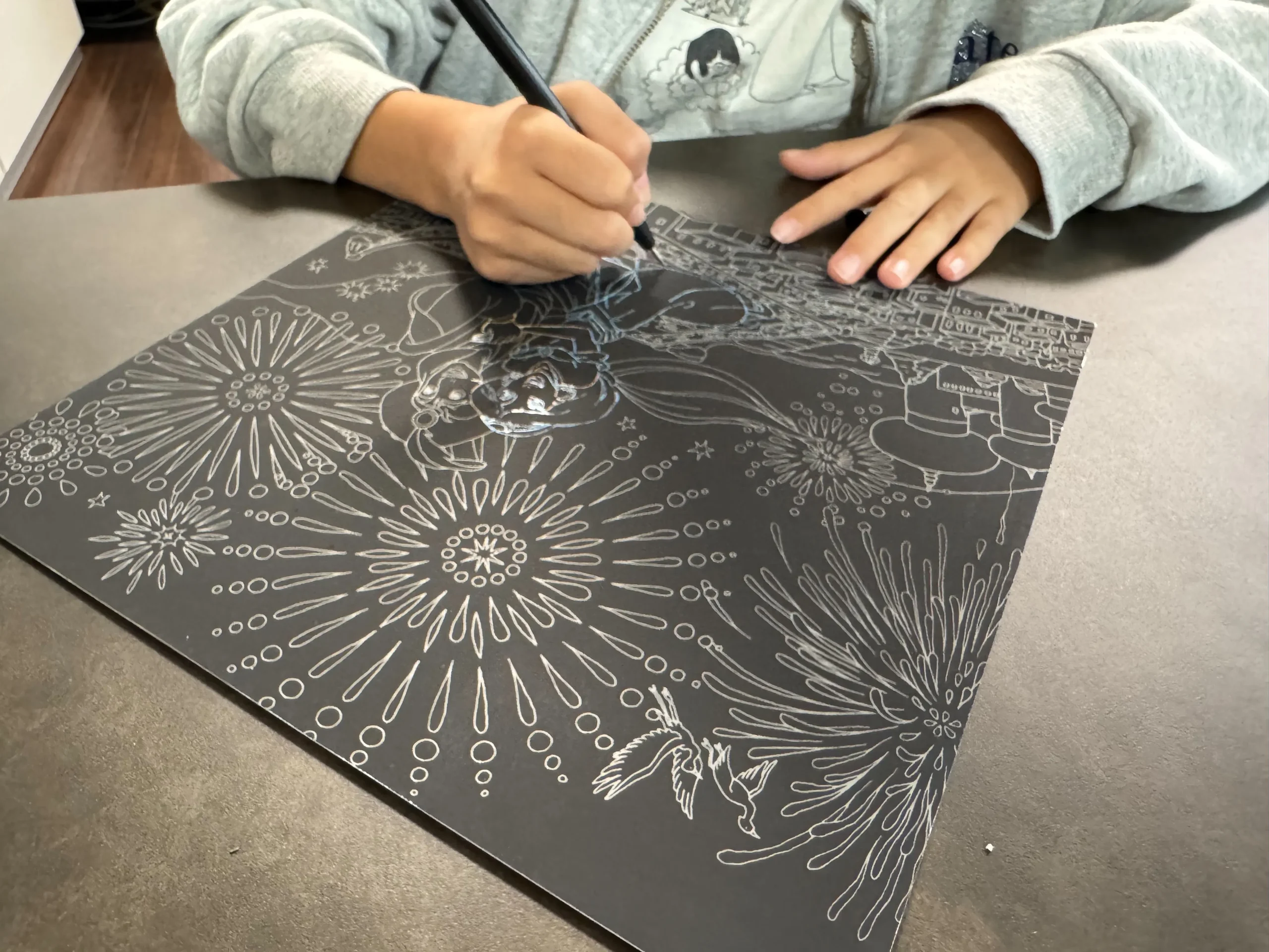 そんな「芸術の秋」にスクラッチアートをしている子^^