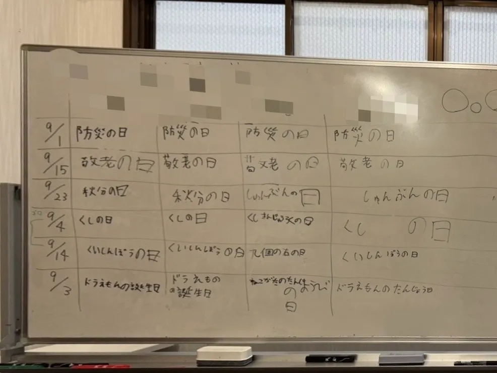 恒例の「毎月の祝日」、9月の祝日や語呂合わせ等を小学生達が考えました^^