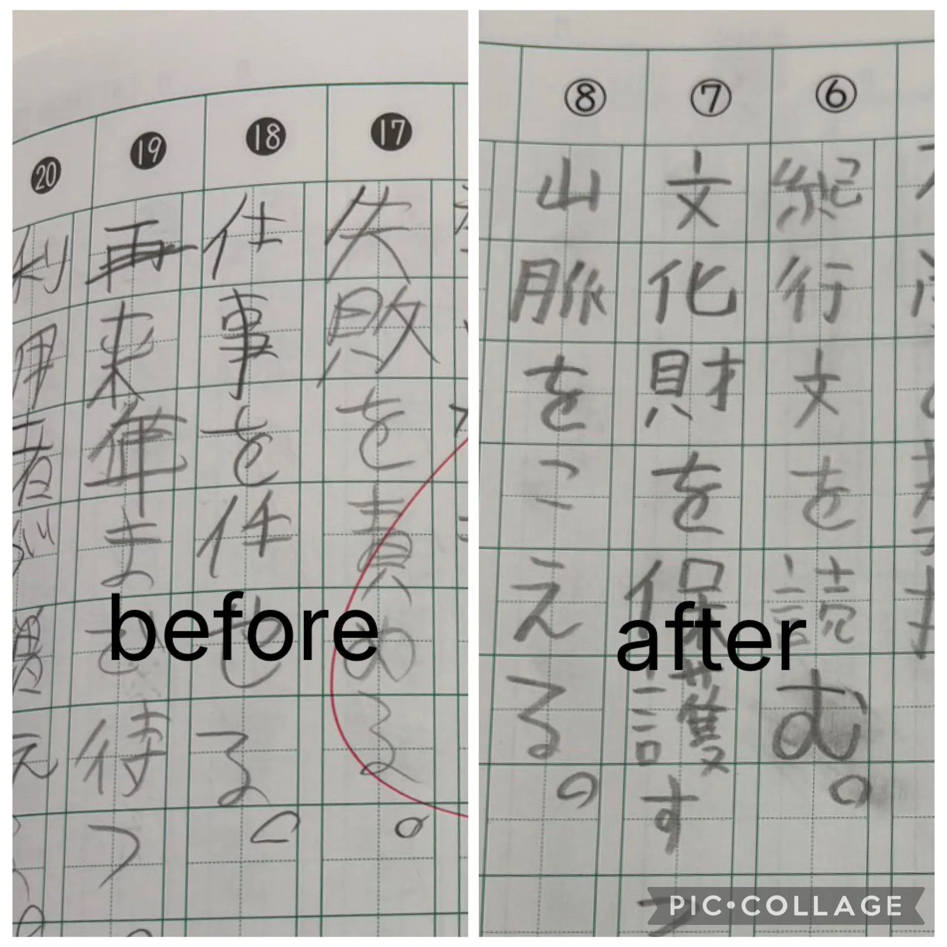 横から「マスからはみださない、ゆっくり書く、一画ずつ繋げずに」とひたすら声をかけました。😂